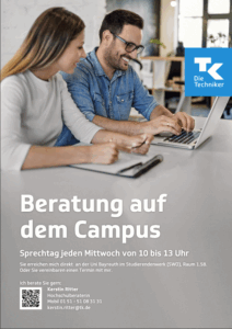 Kostenlose Beratung für Studierende zu Fragen der Krankenversicherung durch die Techniker Krankenkasse. Auch für Nichtmitglieder.